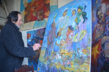 TCCV Online - Với họa sĩ Phạm Phi Trường, niềm đam mê hội họa chưa bao giờ nguội lạnh dù năm nay ông đã bước sang tuổi 70. Bây giờ, trong căn gác nhỏ của ngôi nhà cũ kỹ hướng ra mặt sông Thạch Hãn, ngày ngày ông vẫn dùng những nét vẽ tài hoa của mình để thể hiện lòng tôn kính với vị lãnh tụ vĩ đại của dân tộc: Bác Hồ kính yêu cũng như tình yêu với biển đảo thiêng liêng của Tổ quốc…
