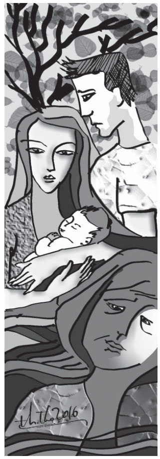 Phan về quê thấy mấy hàng na trồng trên nền đất lấp ao đã cao đến đầu gối, cành lá tươi xanh. Mấy năm nữa là tha hồ hái những trái chín ngọt thơm. Bà cụ nhìn cây càng thêm nhớ đến người. Phan nói, “Thư sắp sinh rồi chúng con nhờ mẹ lên chăm sóc ít ngày”. Bà cụ khẽ quệt nước mắt, lật đật ra sau nhà ngó mấy ổ gà đẻ nhặt thêm ít trứng. Chọn hai con gà béo nhất nhốt sẵn để mang cho con dâu. Bà tính nhờ hàng xóm thỉnh thoảng sang chóp nhà, thắp nén hương lên bàn thờ ông cho đỡ lạnh lẽo. Đến nửa đêm khi đã lên giường nằm bà vẫn còn ngồi dậy mò mẫm ra vườn chặt lấy ít roi dâu. Bà sợ sáng ra vội đi có khi quên, xuống thành phố kiếm đỏ mắt mà nhiều khi không có. Cành dâu vừa để dựng quanh nhà, vừa để bà tiện chiếc vòng dâu nhỏ xinh cho cháu nội đeo vào tay xua đuổi tà ma. Bà cứ lục đục trong buồng chuẩn bị hết thứ này đến thứ khác. Phan nằm ở ngoài nhà khẽ nhắc “ngủ thôi mẹ, mai đường dài sẽ mệt…”.